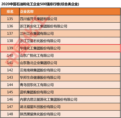 10月20日,2020年“中國石油和化工企業(yè)500強發(fā)布會暨后疫情時代中國化工大發(fā)展對策高峰論壇”以直播形式在線上舉行。會上發(fā)布了2020中國石油和化工企業(yè)500強排行榜,我公司以亮麗的成績榮登榜單,位列第139名。這是我公司連續(xù) 4年入圍中國石油和化工企業(yè)500強榜單,此外我公司連續(xù)多年躋身中國化肥企業(yè)100強、中國磷復肥企業(yè)100強。